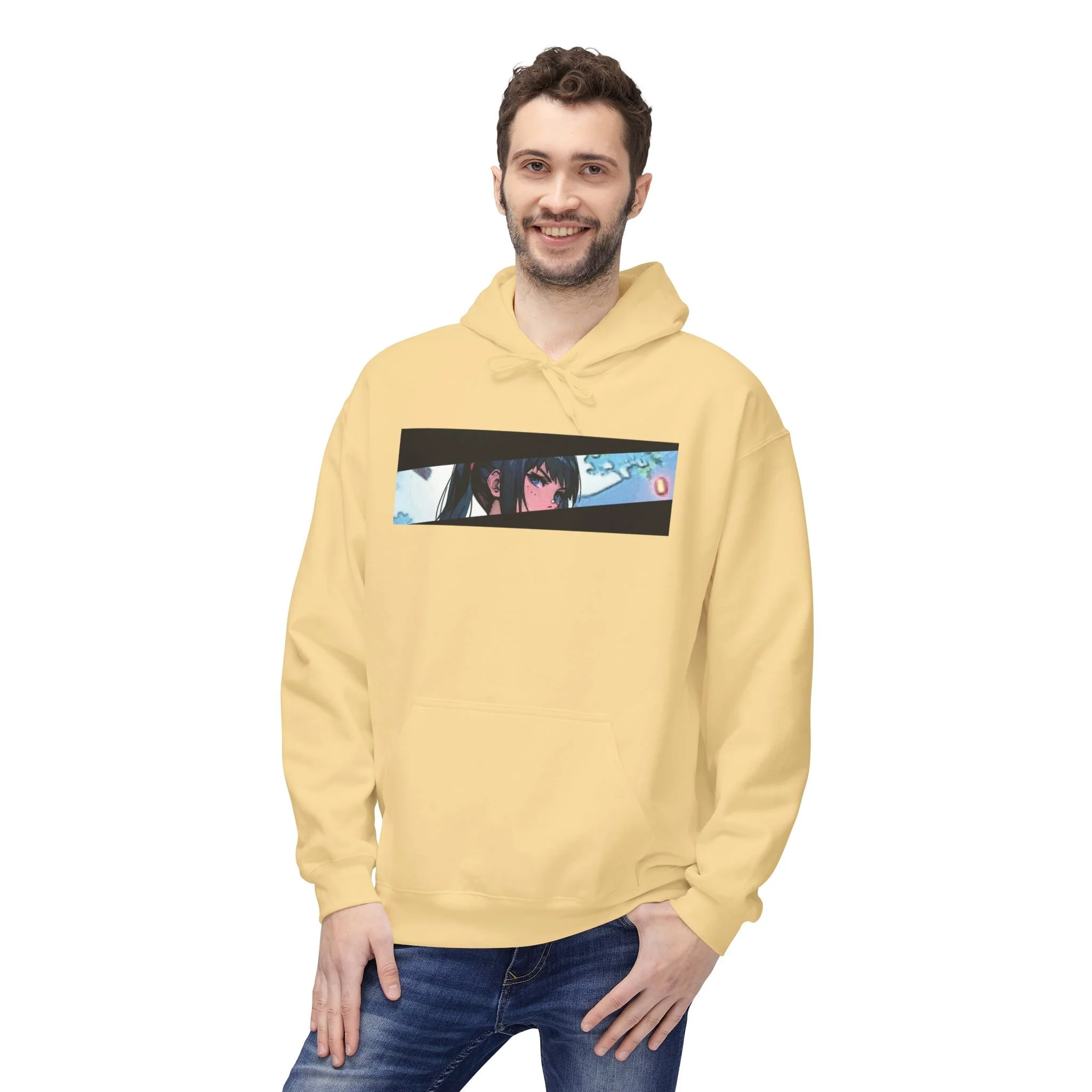 A soft midweight hoodie with an understated, cinematic graphic across the chest — a quick glimpse from Kaname. The relaxed dropped shoulders and roomy pouch pocket make it an easy layer for chilly evenings or slow mornings. It’s made with a substantial cotton-rich fabric that wears in softly over time and is produced with sustainable and socially conscious standards, so the hoodie feels good both to wear and to own.
